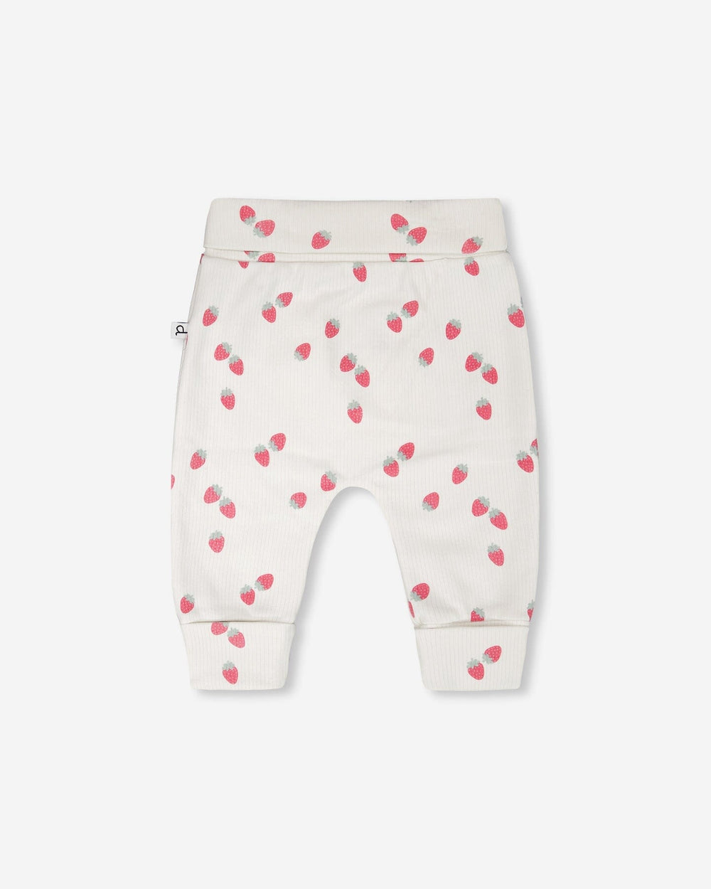 Cotton Jersey Evolutive Pants White Printed Strawberries
