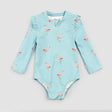 Flamingo Print on Canal Blue Long-Sleeve Swimsuit | Miles The Label
