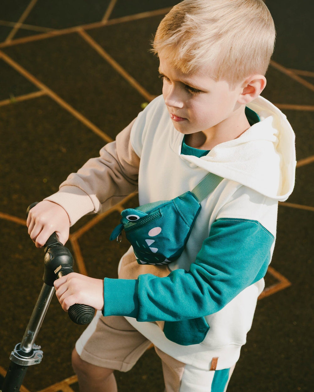 Playful and stylish, these French terry shorts in beige are designed for active summer fun. The sporty shorts feature a comfortable elastic waistband with drawstring, slant side pockets, and contrasting white and green panels on each side. Finished with turned-up cuffs, it brings a sporty twist to a versatile everyday piece.