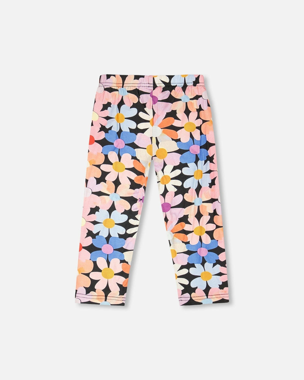 Our viscose legging in black with printed flowers is a playful essential for her wardrobe. These bottoms feature and elastic waist and an allover oversized floral design in bright shades against a dark background, adding a bold yet sweet touch to everyday outfits. Made from soft and stretchy viscose with a hint of elastane, it offers both comfort and flexibility, perfect for pairing with tops from our “Sweets And Swirls” collection.