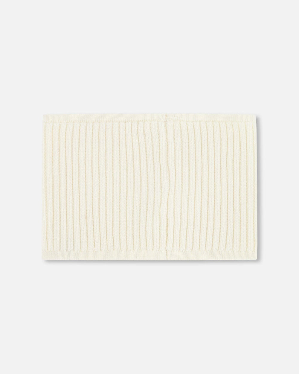 The knit neck tube in off white is the perfect lightweight layer for breezy spring days. Soft and cozy, this warm accessory is made from a fine ribbed knit blend of viscose, polyester, and nylon for just the right balance of stretch and comfort, finished with a logo patch. Easy to pull on and wear, this unisex neck warmer keeps kids and babies snug during every outdoor adventure.